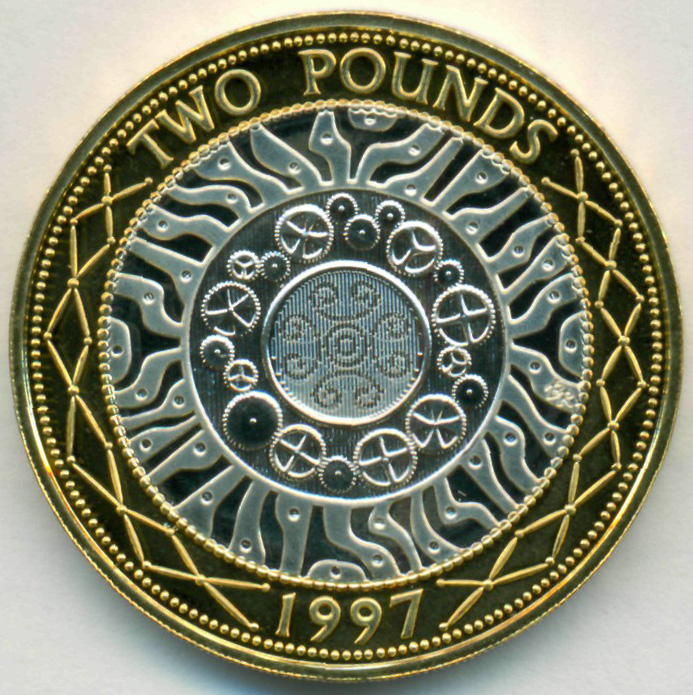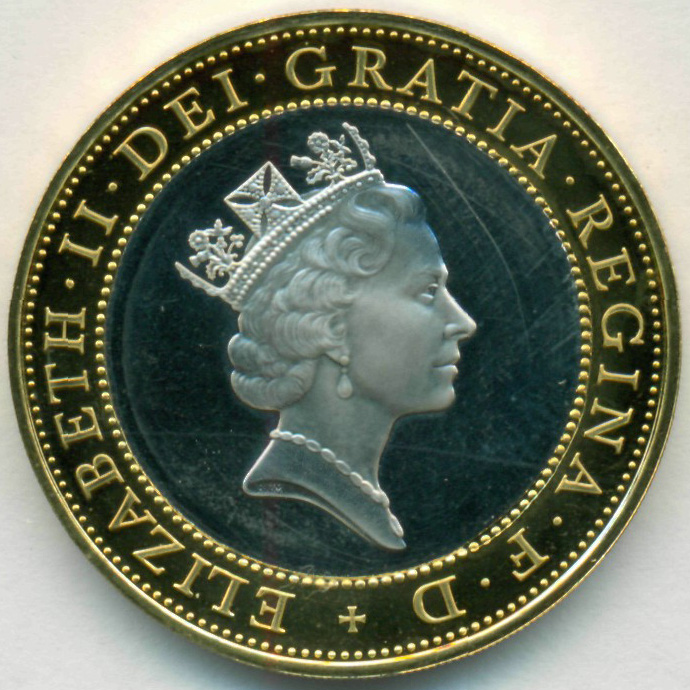 Памятная монета, приуроченная к первому выпуску биметаллической монеты Великобритании.