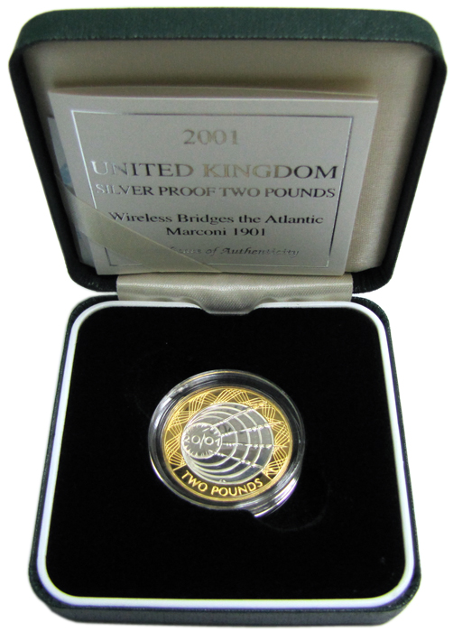 Памятная монета, посвященная 100-летию использования трансатлантической длинноволновой радиосвязи.
