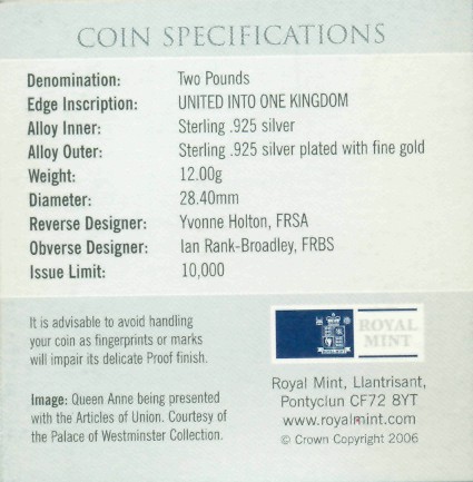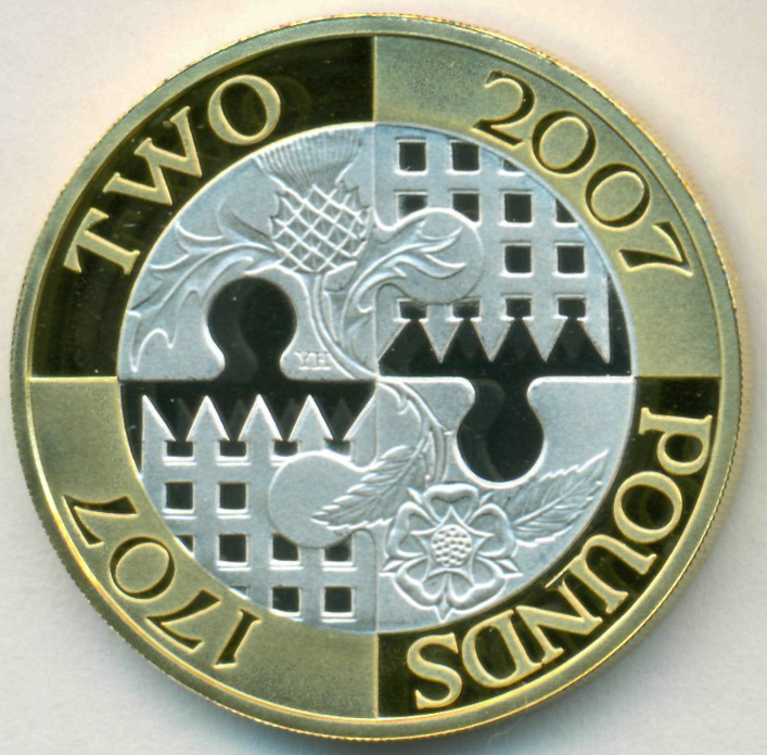 Памятная монета, посвященная 300-й годовщине подписания "Акта объеденения" Англии и Шотландии.