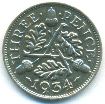 Великобритания, 3 пенса 1934 год (AU)