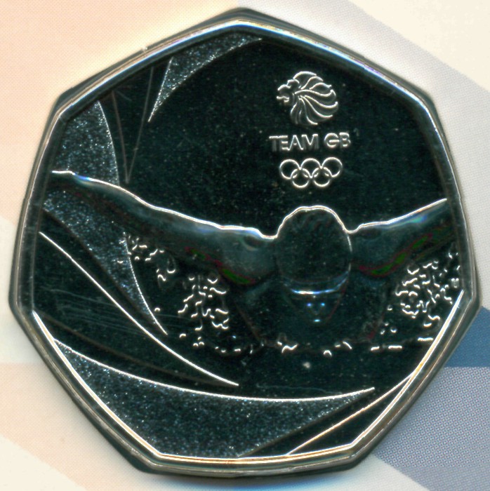 Памятная монета, приуроченная к проведению XXXI летних Олимпийских игр в Рио-де-Жанейро (Бразилия), 2016 год. Плавание.