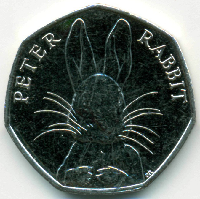 Коллекционная монета. Кролик Питтер - персонаж сказки детской писательницы Беатрис Поттер (1866-1943).