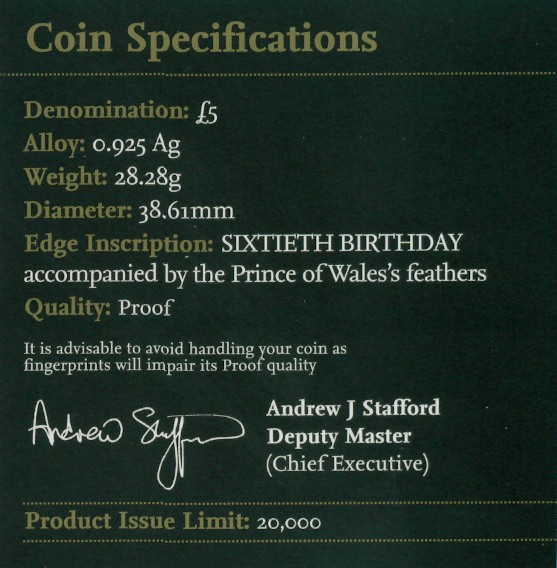 Памятная монета, посвященная 60-й годовщине со дня рождения Принца Чарльза.