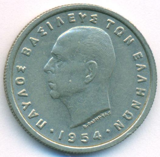 Греция, 1 драхма 1954 год (AU)