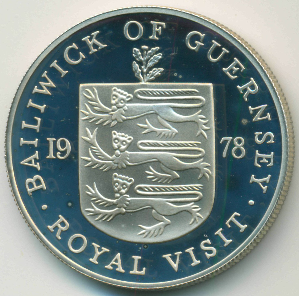 Памятная монета, приуроченная к королевскому визиту Елизаветы II на остров Гернси.