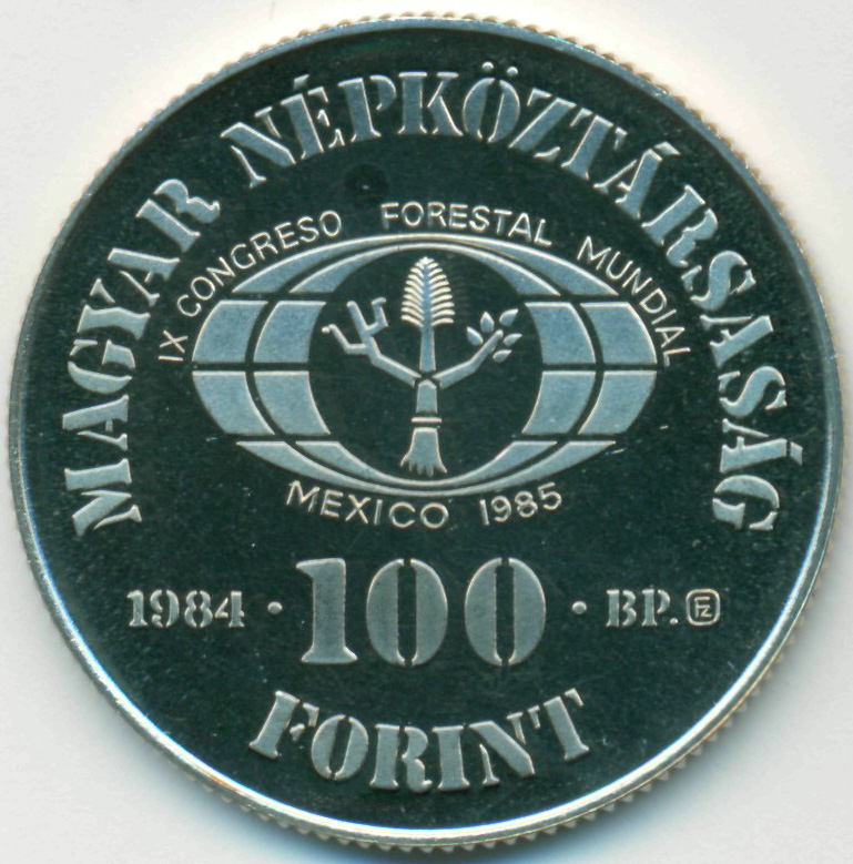 Памятная монета, приуроченная к проведению IX международного конгресса "Развития лесного хозяйства", Мексика 1985 год.