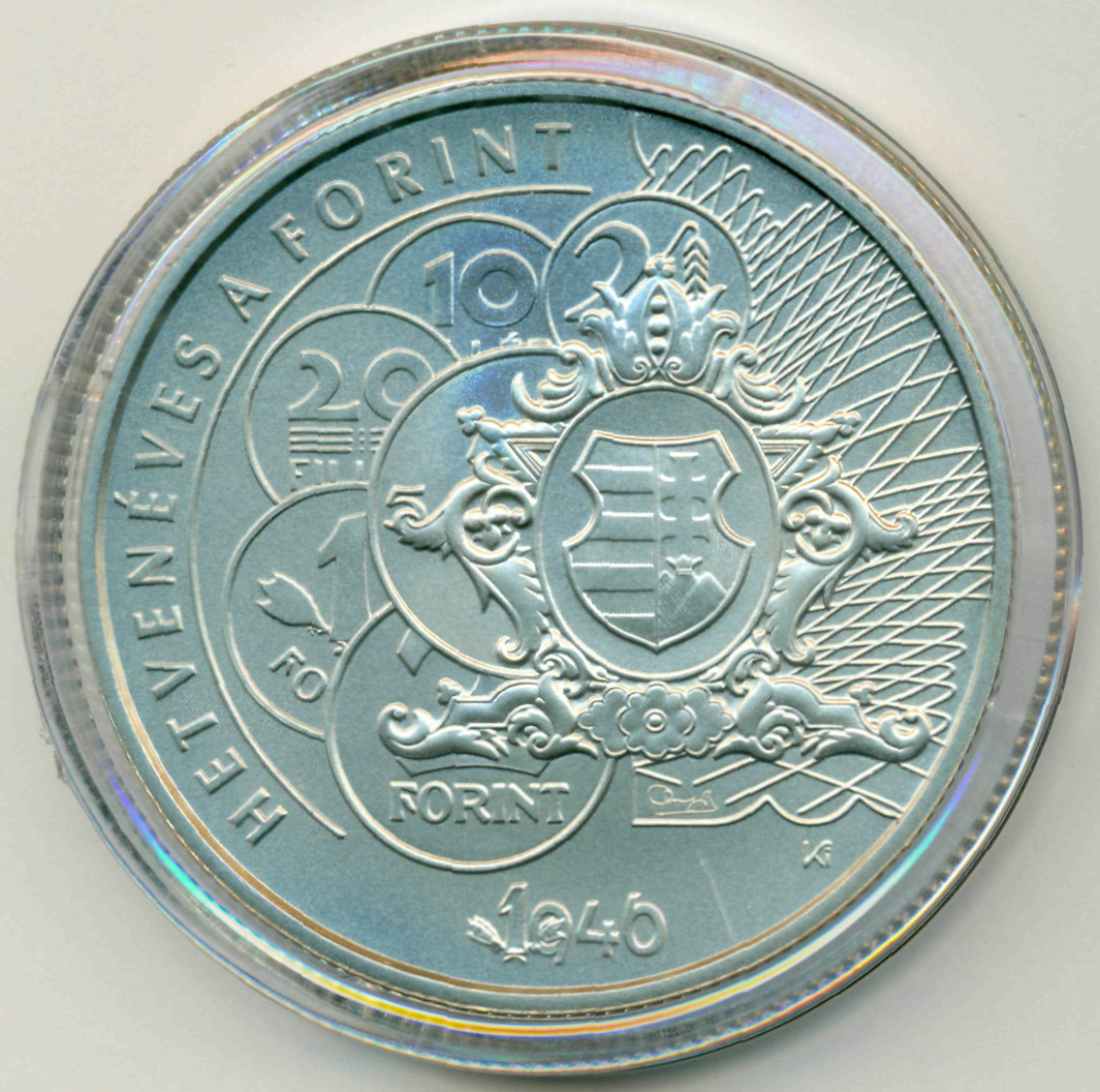 Памятная монета, приуроченная к 70-й годовщине введения в обращение венгерского форинта, 01 августа 1946 год.