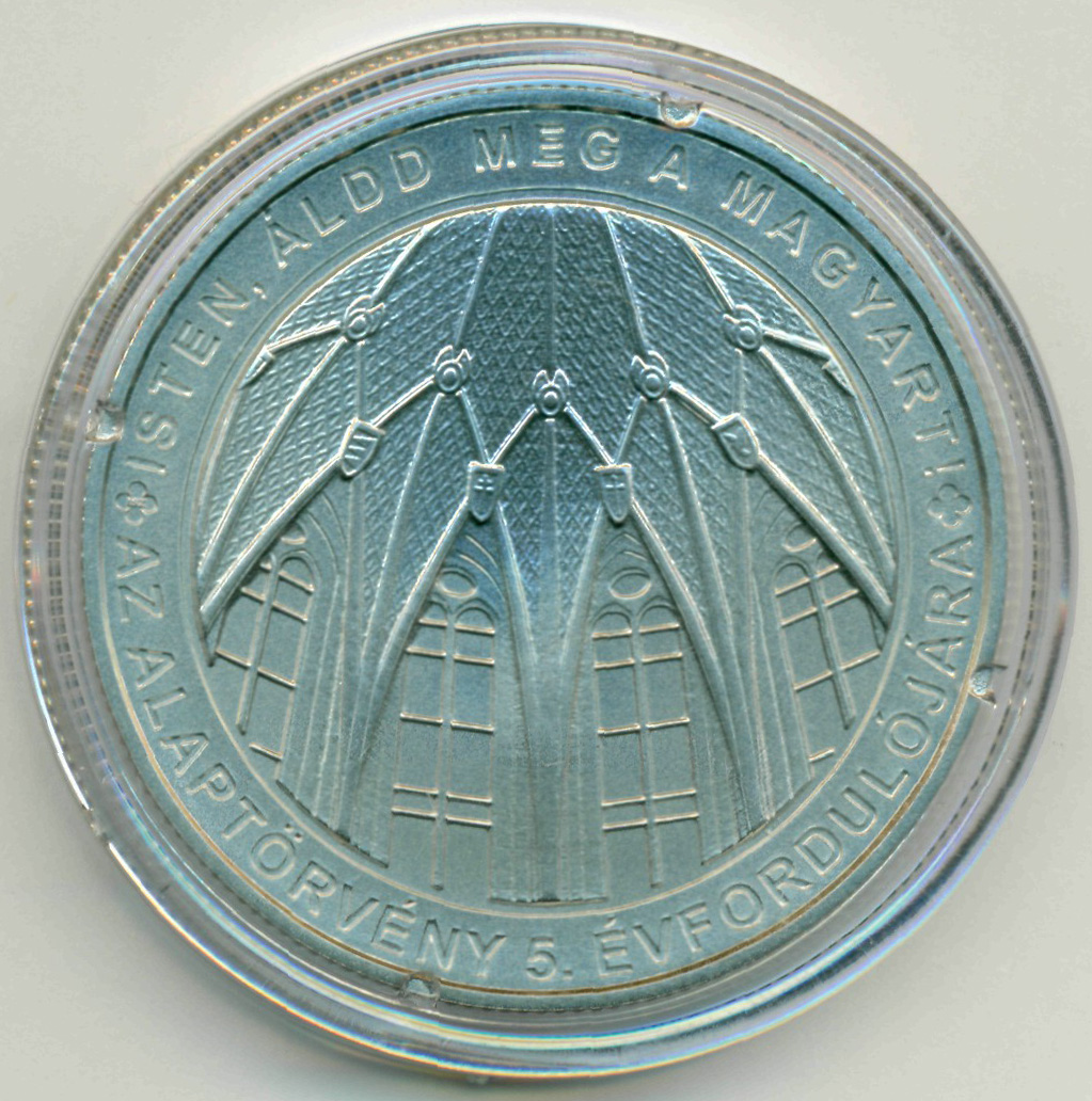 Памятная монета, приуроченная к 5-й годовщине со дня принятия Конституции Венгрии.