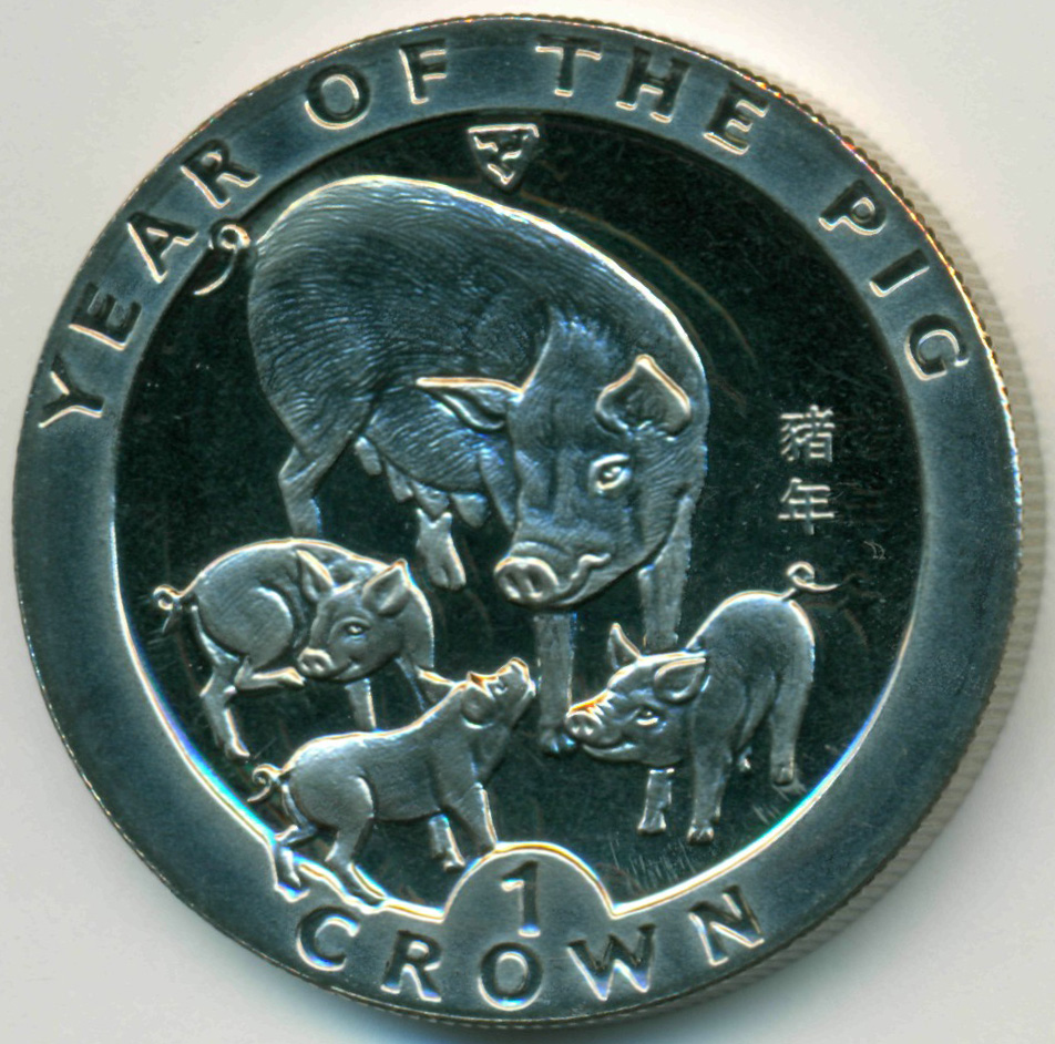 Коллекционная монета из серии "Китайский зодиак". 1995 год - год деревянной свиньи.