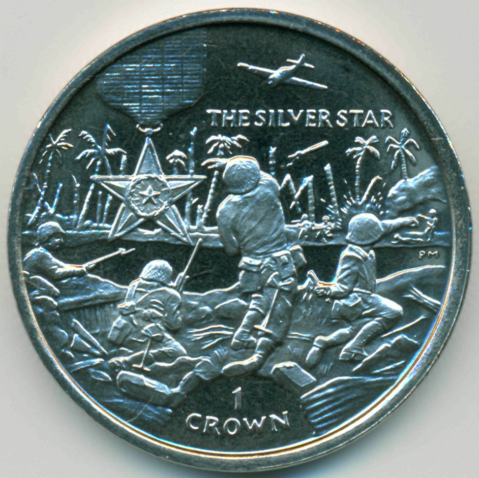Коллекционная монета, из серии "Награды Мира". Серебряная Звезда - персональная военная награда США.