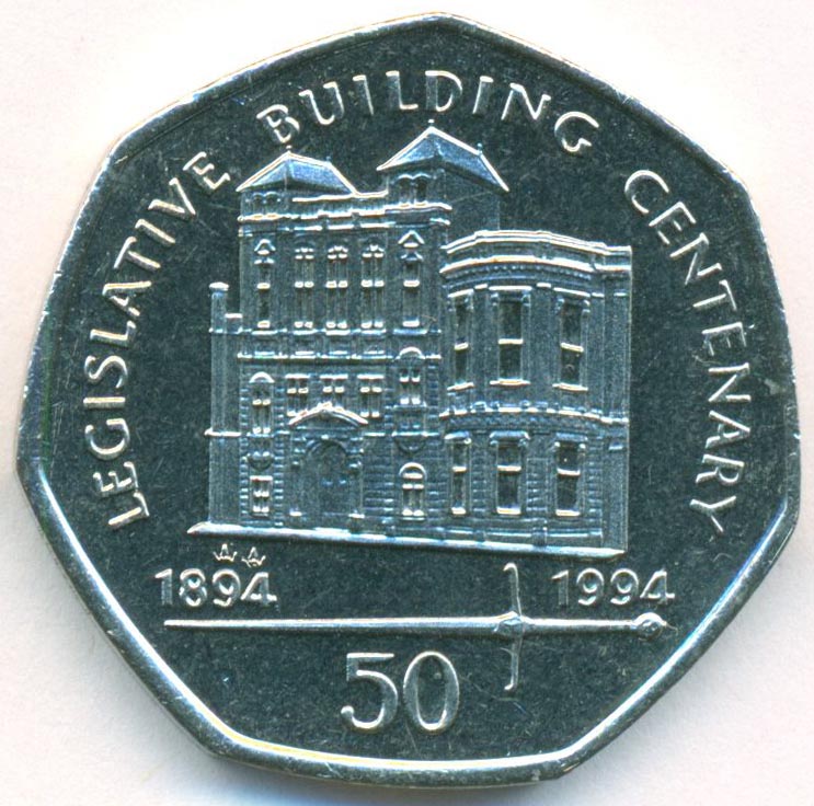 Памятная монета, приуроченная к 100-летию постройки здания Парламента Острова Мэн.