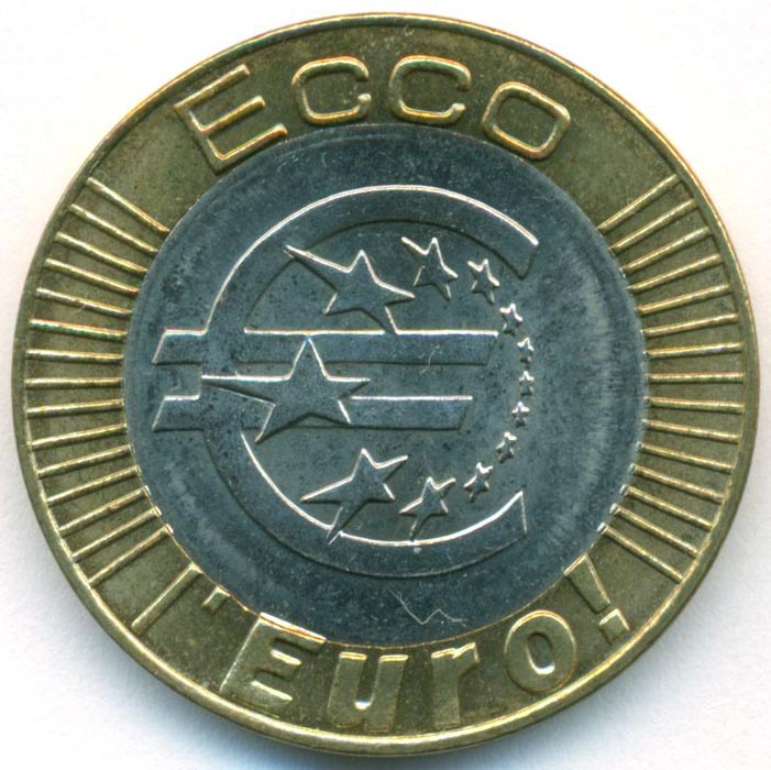 Данная монета была отчеканена по случаю празднования периода ознакомления с новой валютой, до введения евро, в строго ограниченном количестве.