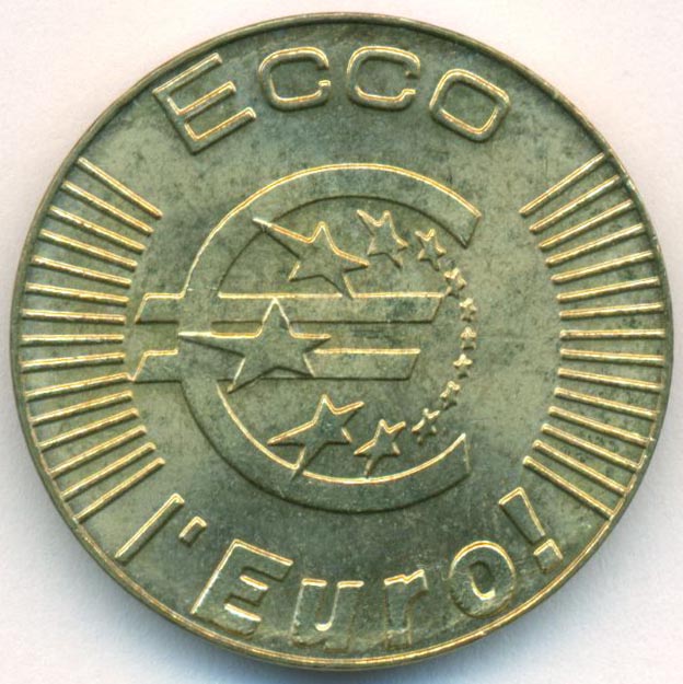 Данная монета была отчеканена по случаю празднования периода ознакомления с новой валютой, до введения евро, в строго ограниченном количестве.