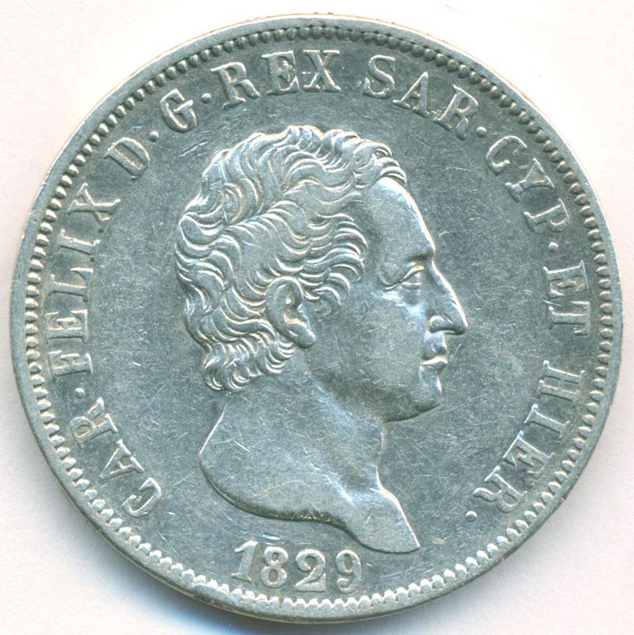 Сардиния, 5 лир 1829 год