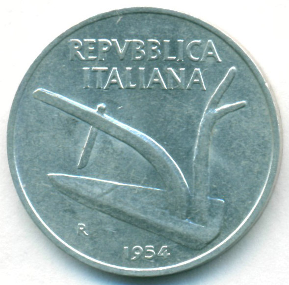 Италия, 10 лир 1954 год (AU)