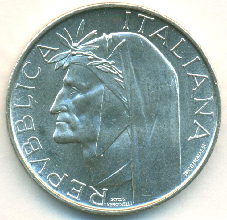 Памятная монета, посвященная 700-летию со дня рождения Данте Алигьери (1265-1321) - итальянского поэта, мыслителя и богослова.