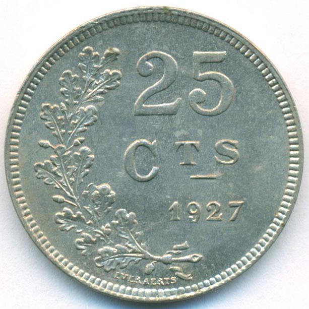 Люксембург, 25 сантимов 1927 год (UNC)