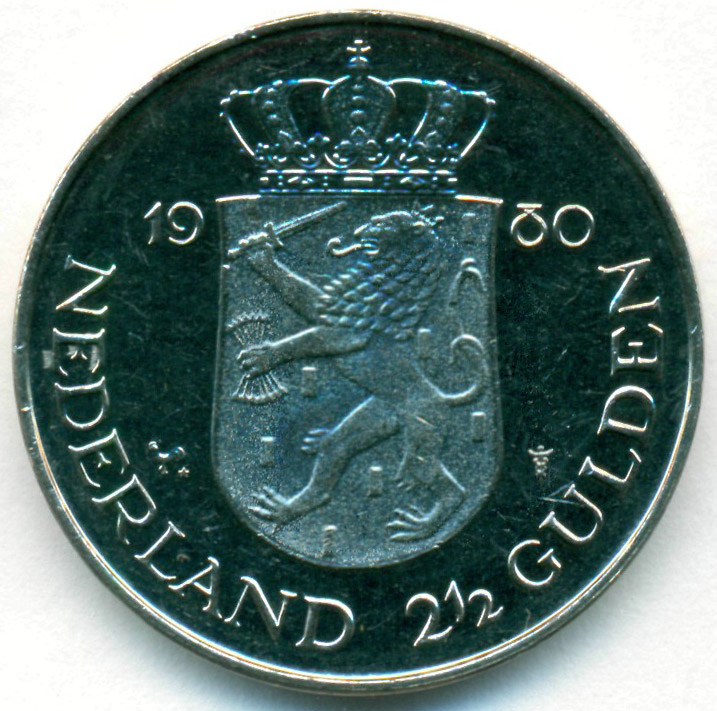 Нидерланды, 2-1/2 гульдена 1980 год (UNC)