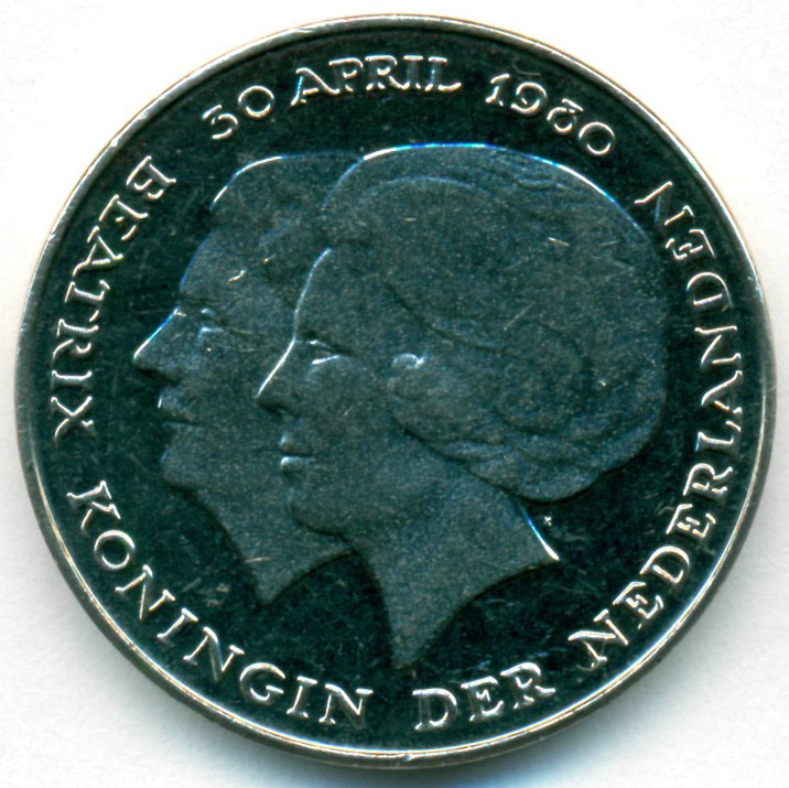 Памятная монета, посвященная коронации Королевы Нидерландов - Беатрикс, 30 апреля 1980 год.