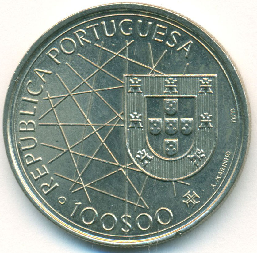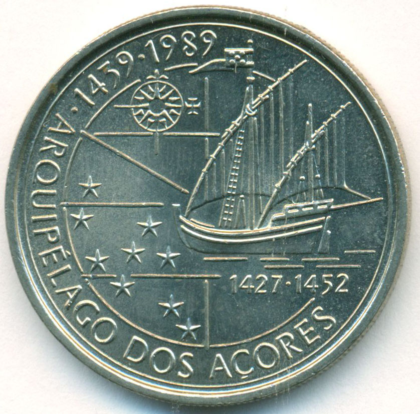 Коллекционная монета из серии "Золотая эра Португальских открытий" - Открытие Азорских островов.