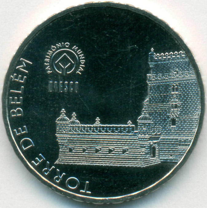Монета из серии "Всемирное наследие ЮНЕСКО". Башня Торри-ди Белен в Лиссабоне.