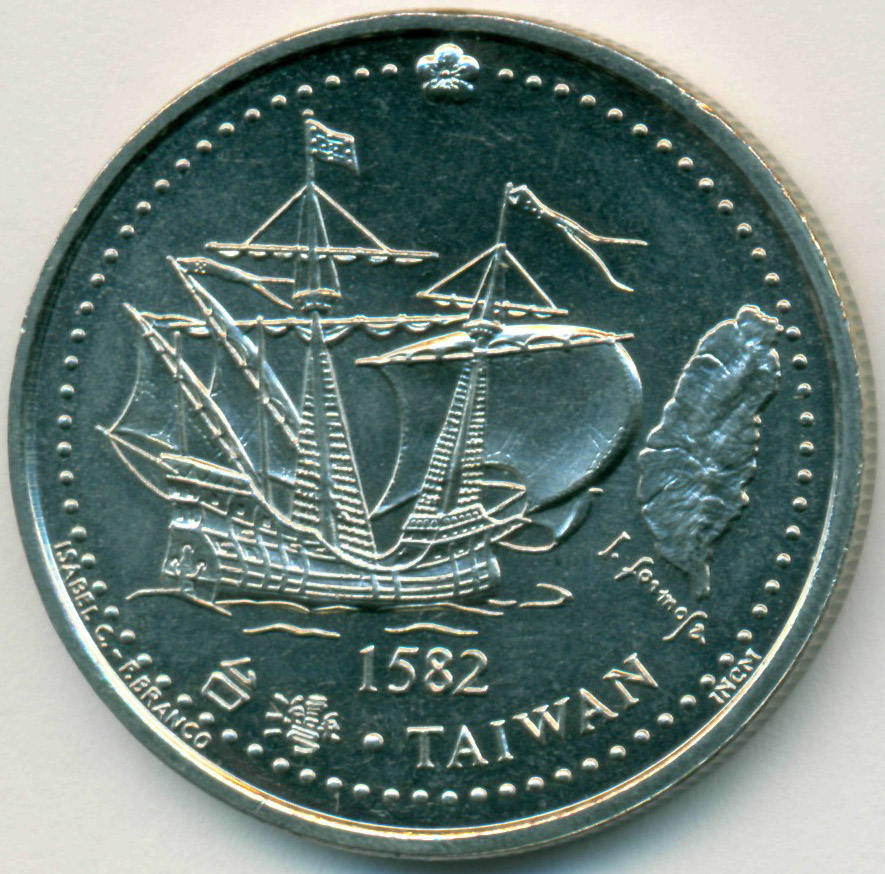 Памятная, коллекционная монета, посвященная путешествию португальцев на остров Тайвань, 1582 год.