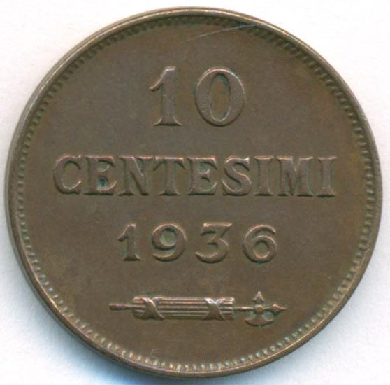 Сан-Марино, 10 чентезимо 1936 год