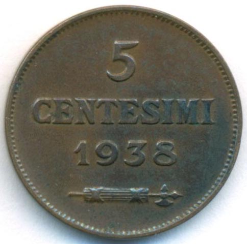 Сан-Марино, 5 чентезимо 1938 год