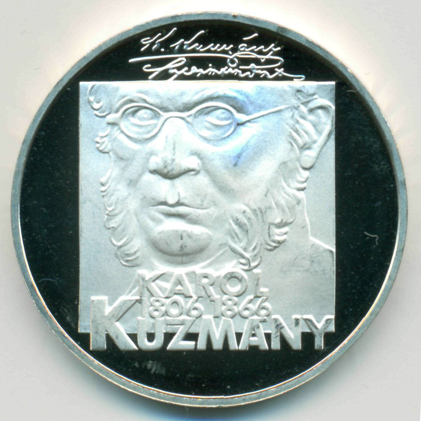 Памятная монета, посвященная 200-летию со дня рождения Кароля Кузманого (1806-1866) - словацкого литератора.