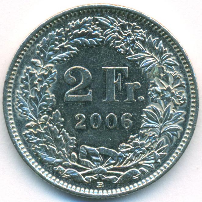 Швейцария, 2 франка 2006 год (AU)