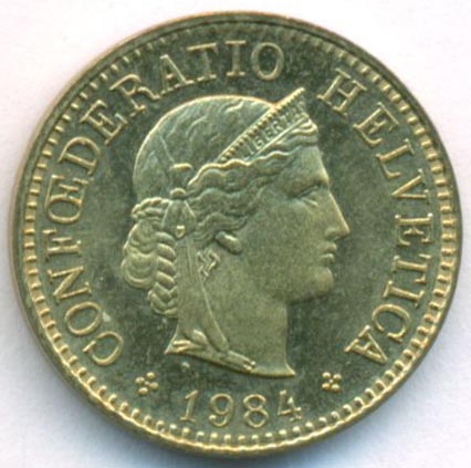 Швейцария, 5 раппенов 1984 год (UNC)