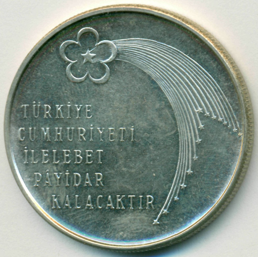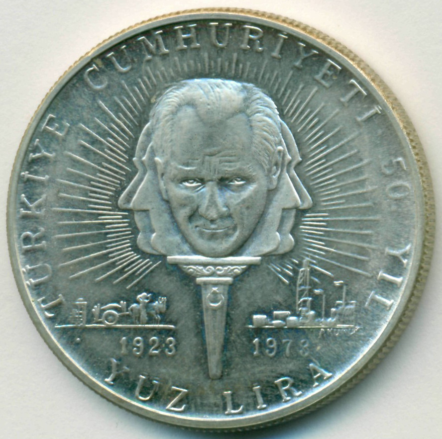 Юбилейная монета, посвященная 50-й годовщине провозглашения Турецкой Республики.