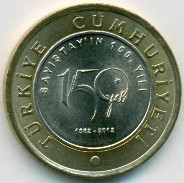 Памятная монета, приуроченная к 150-й годовщине образования Счетной палаты Турции.