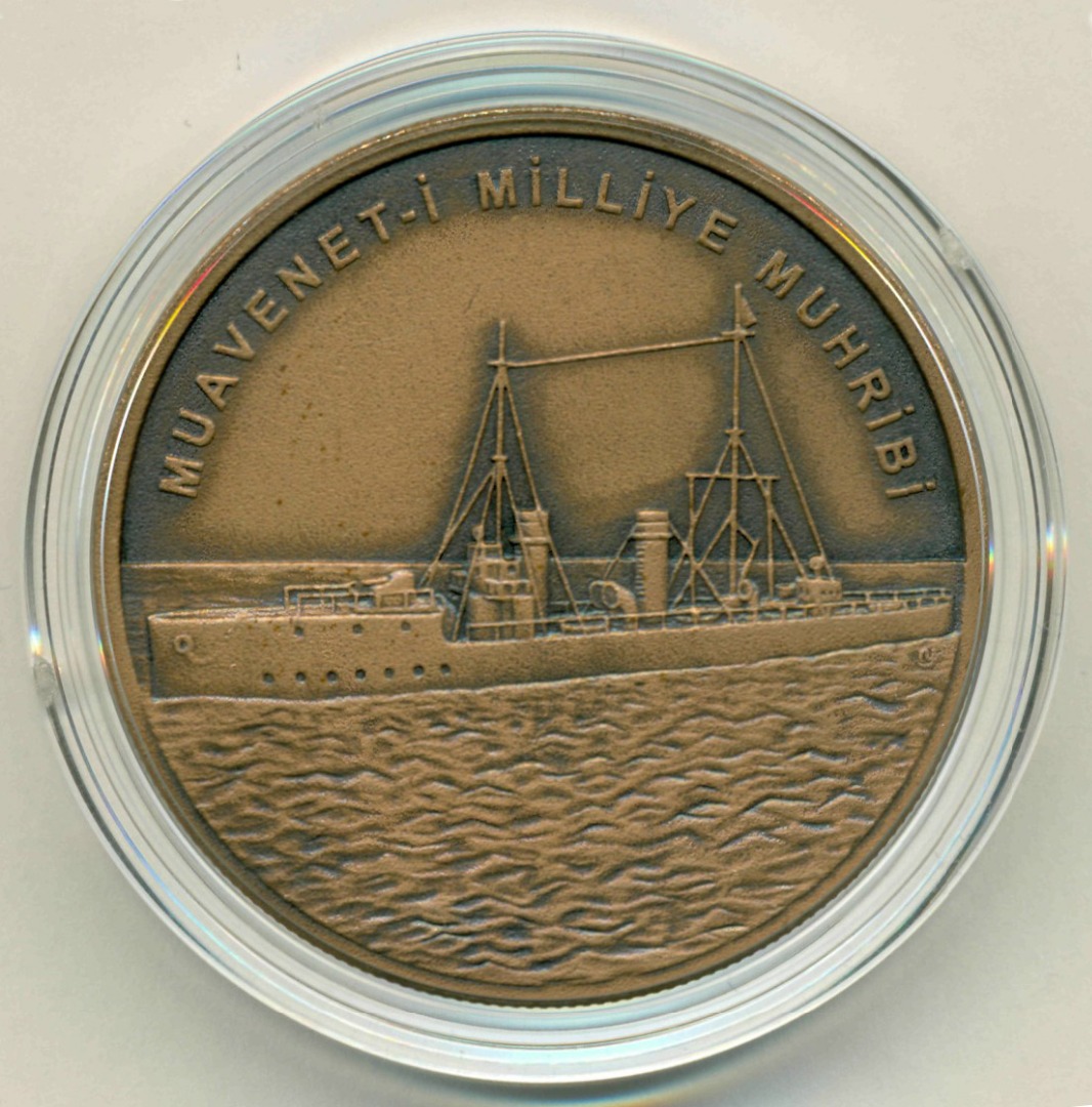 Коллекционная монета из серии "ВМФ Турции в морских сражениях Первой Мировой войны". Эсминец "Муавенет-и-Миллие".
