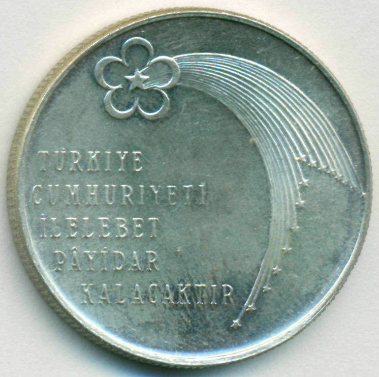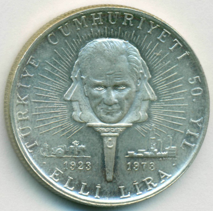 Юбилейная монета, посвященная 50-й годовщине провозглашения Турецкой Республики.