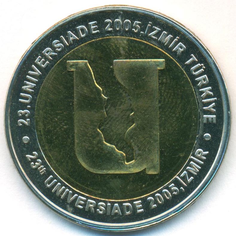 Памятная монета, приуроченная к проведению XXIII летней Универсиады в Измире (Турция), 2005 год.