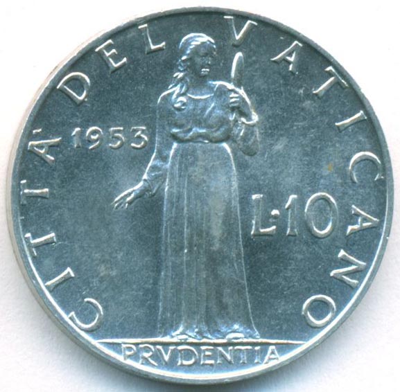 Ватикан, 10 лир 1953 год