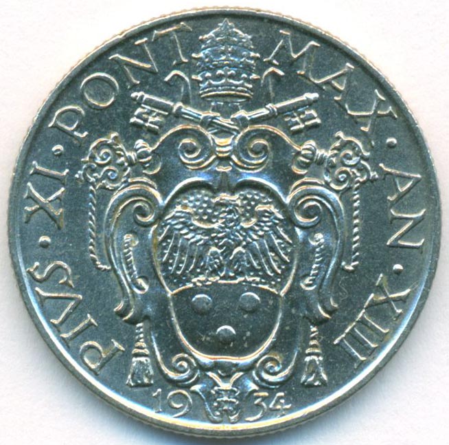 Ватикан, 1 лира 1934 год