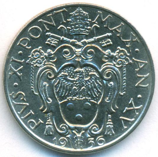 Ватикан, 20 чентезимо 1936 год (UNC)