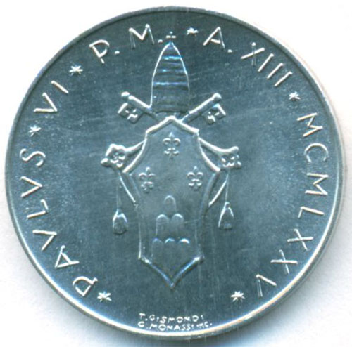 Ватикан, 5 лир 1975 год (UNC)