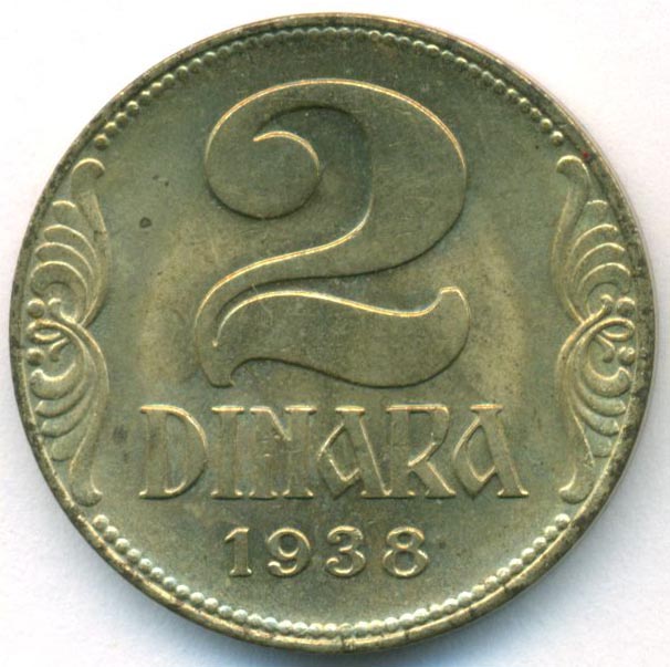 Югославия, 2 динара 1938 год (UNC)