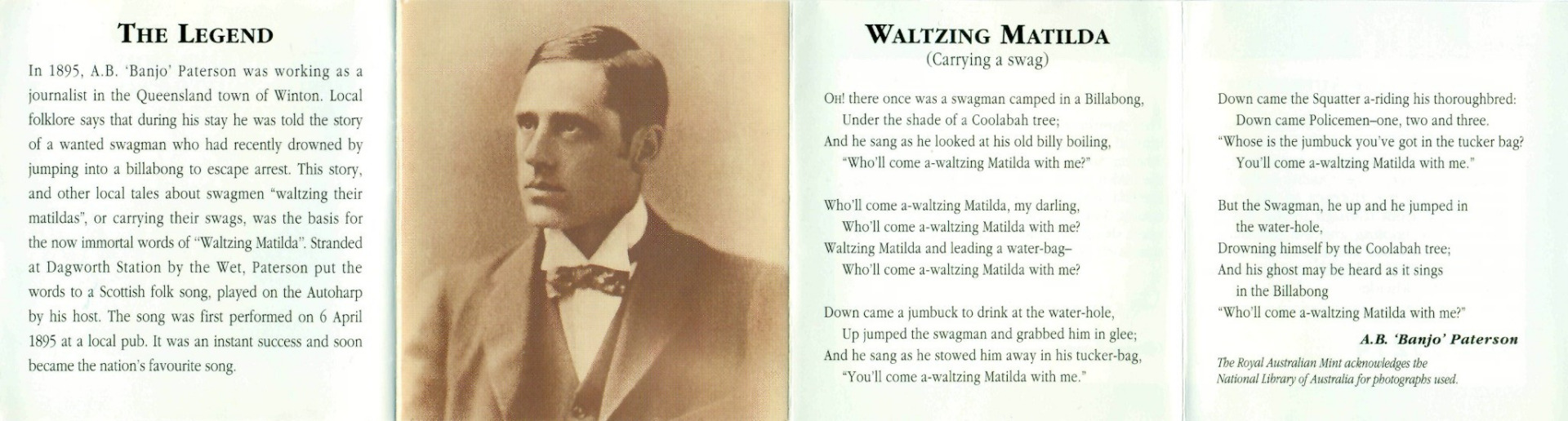 Эндрю Бартон Патерсон (1864-1941) - австралийский поэт, журналист - автор текста песни "Вальсируя с Матильдой" (непризнанный гимн Австралии).