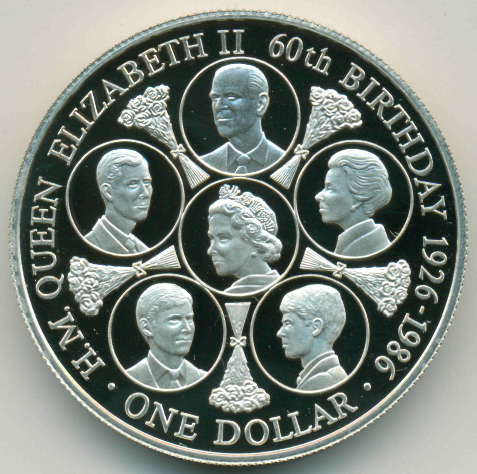 Памятная монета, посвященная 60-й годовщине со дня рождения Королевы Великобритании Елизаветы II (21 апреля 1986 года).