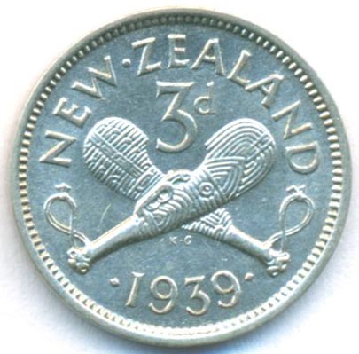Новая Зеландия, 3 пенса 1939 год (AU)