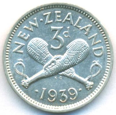 Новая Зеландия, 3 пенса 1939 год (AU)