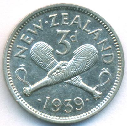 Новая Зеландия, 3 пенса 1939 год