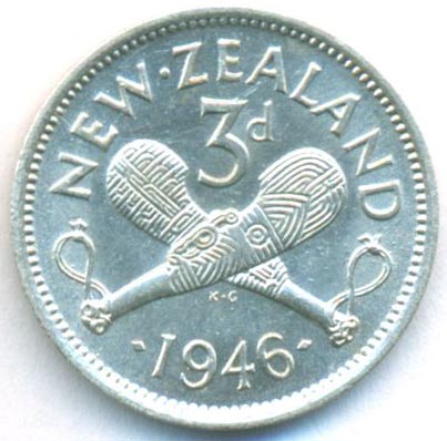 Новая Зеландия, 3 пенса 1946 год (UNC)
