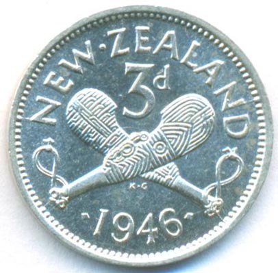 Новая Зеландия, 3 пенса 1946 год (AU)
