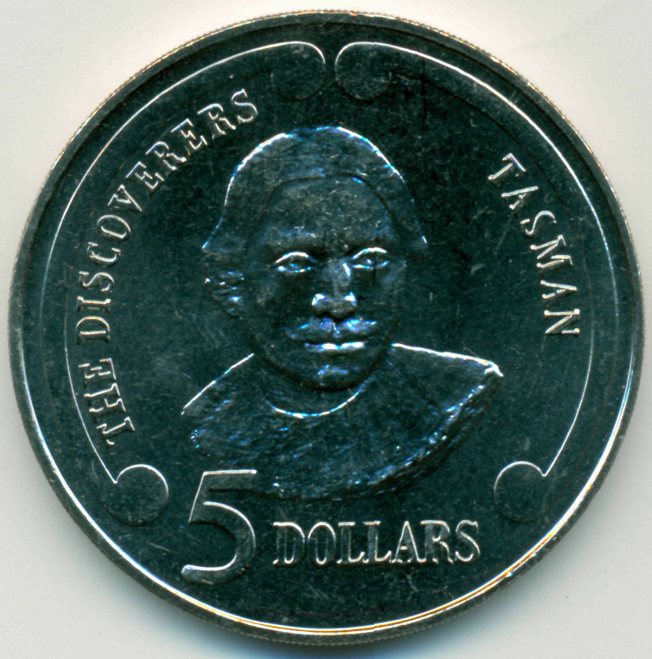 Монета из серии "Первооткрыватели". Абел Янсзон Тасман.