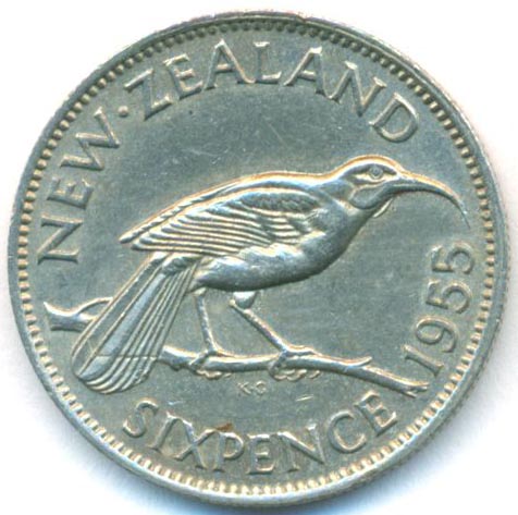 Новая Зеландия, 6 пенсов 1955 год